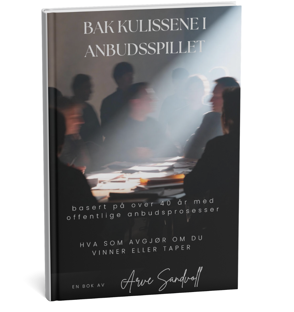 Du er nå ett steg unna å forstå noe de fleste leverandører aldri får innsyn i. Mange opplever det samme: De bruker uker på tilbudsarbeid, leverer et gjennomarbeidet tilbud – og taper likevel. Ofte uten å egentlig få svar på hvorfor. Denne boken er skrevet nettopp for det øyeblikket. Etter over 40 år med offentlige anskaffelser, som innkjøper, rådgiver og konsulent, har Arve Sandvoll deltatt i evalueringene leverandører aldri ser. Han har lest tilbudene, hørt diskusjonene og vært med når avgjørelsene faktisk tas.